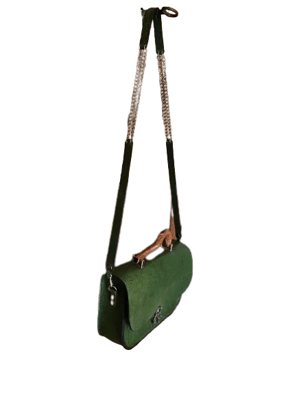 Borsa Ginevra Verde – Pelle Toscana 3 mm con Manico in Radice di Mangrovia