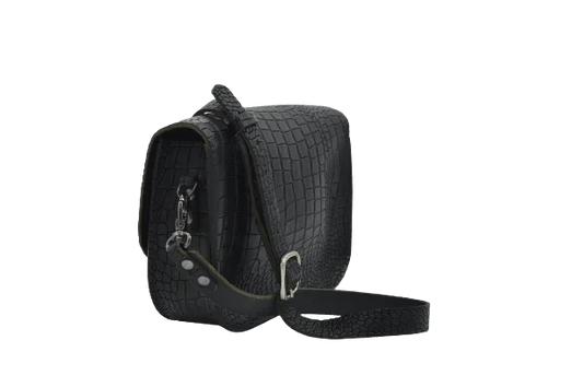 Borsa Lucrezia in Pelle di Bovino Nera con Stampa Cocco – Artigianale Made in Italy