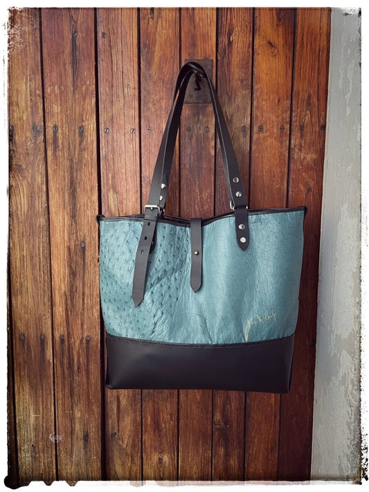 Borsa in Pelle di Struzzo Azzurra da Donna – Artigianale Made in Italy