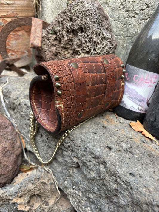 Borsa Matilde in Pelle di Bovino con Stampa Cocco – Inserti in Ottone e Chiusura Medievale